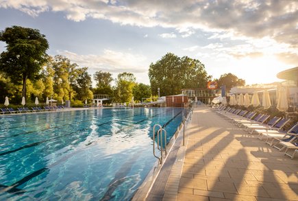 Als besondere Attraktion präsentiert sich das ganzjährig temperierte 50-Meter-Outdoor Sportbecken der Parktherme Bad Radkersburg. Die Kombination aus einem Sportbecken im Außenbereich, befüllt mit temperierten Süßwasser und einer garantierten Wassertemperatur von 25°C von Ende März bis Ende September ist einzigartig in Österreich.