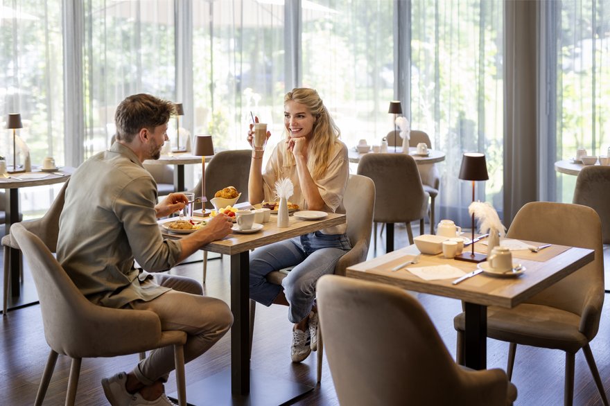 Die Restaurants Fontäne und Mehrblick der Parktherme verwöhnen Sie im Rahmen der Halbpension mit regionalen und saisonalen Gourmetmenüs.