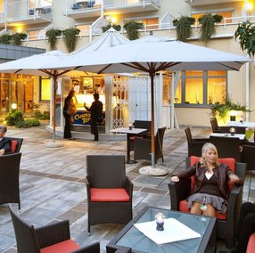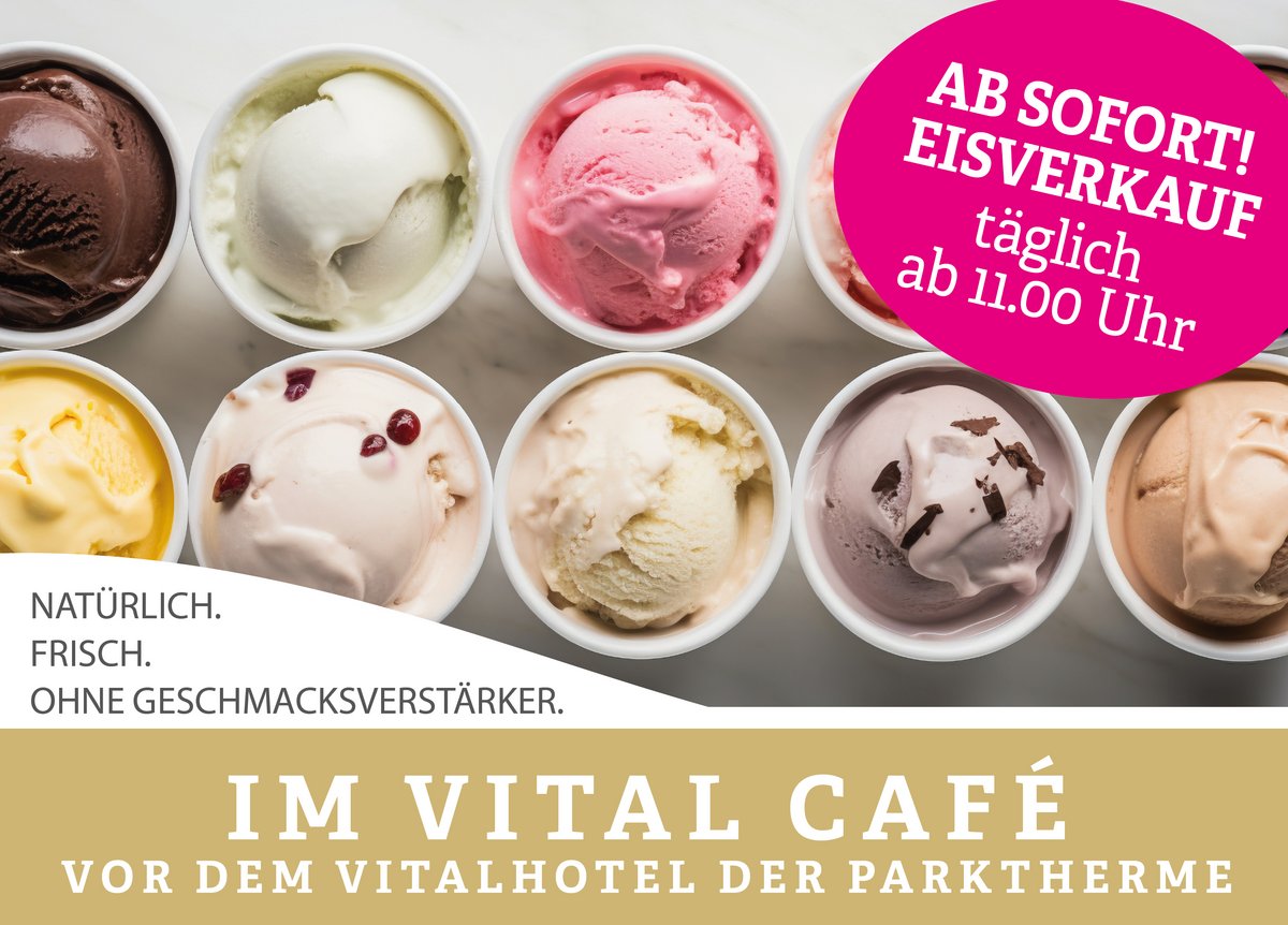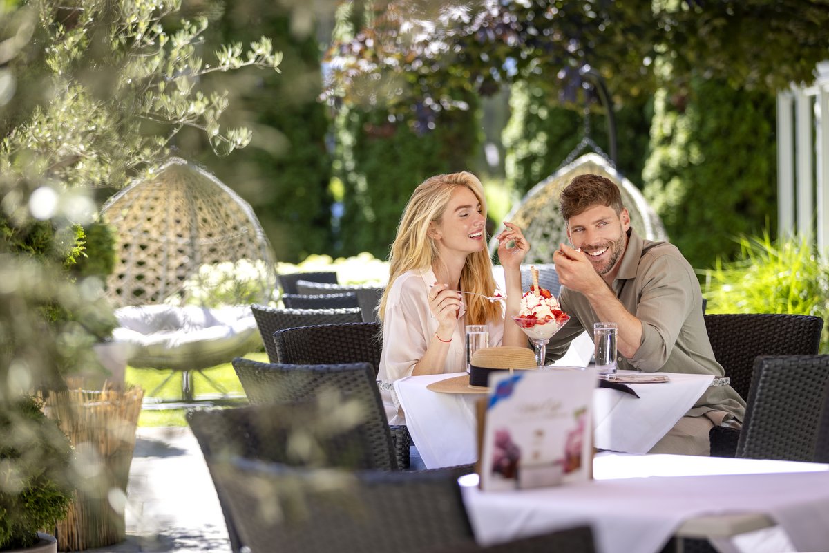 In den Sommermonaten hat unser Vital Café seine Pforten für Sie geöffnet. Auf unserer wunderschönen Terrasse, die liebevoll im italienischen Stil gestaltet ist und ein entspanntes südliches Flair verbreitet, können Sie köstliche Eiskreationen von Charly Temmel genießen. Weiters bieten wir Ihnen Snacks, viele regionale Schmankerl, Cocktails und Kaffee. Auch die schattigen Plätze unter den Palmen eignen sich hervorragend zum Ausspannen und Genießen bei einem kühlen Drink.