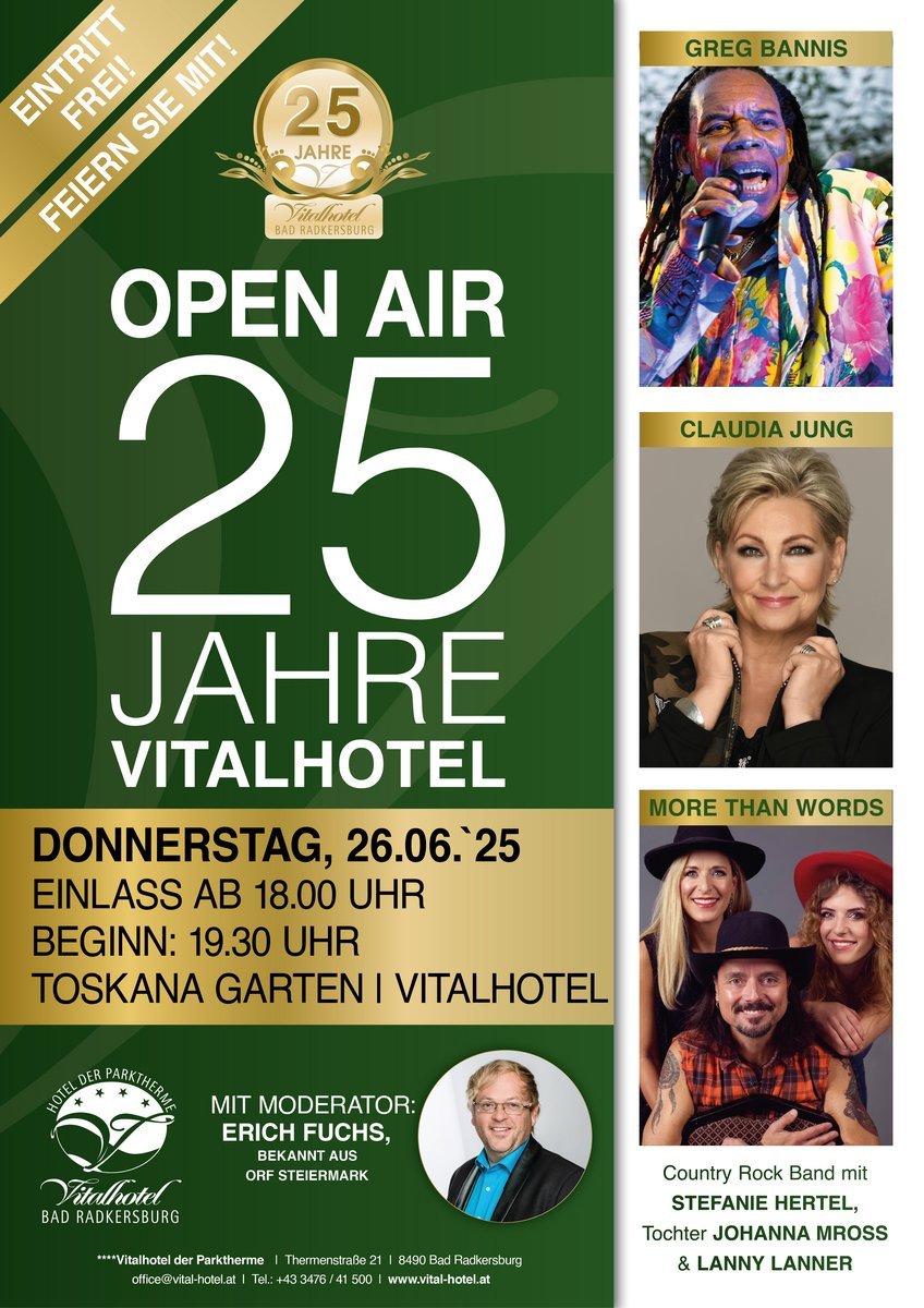 2025 ist somit nicht nur für Frau Wendner ein besonderes Jahr, sondern auch für das gesamte Vitalhotel ein Jubiläumsjahr. In diesem Jahr, 2025, feiert das Vitalhotel der Parktherme Bad Radkersburg sein 25-jähriges Bestehen. Ein Vierteljahrhundert voller Gastfreundschaft, Innovation und unvergesslicher Momente – das möchte das Vitalhotel mit allen Gästen und Freunden feiern.