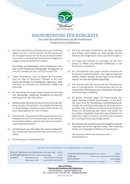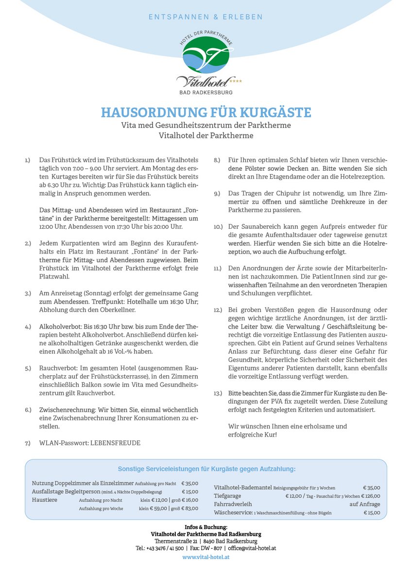 - Thermeneintritte in die Parktherme & Saunadorf (am Anreisetag ab 8 Uhr, am Abreisetag bis 11 Uhr)