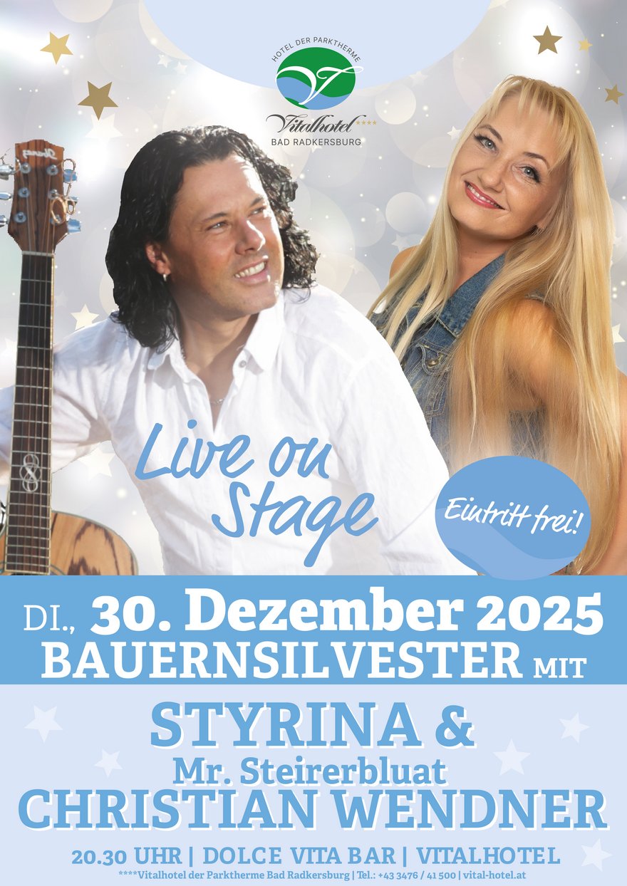 Ein musikalisches Doppel-Highlight zum Bauernsilvester: Christian Wendner & Styina live im Vitalhotel!