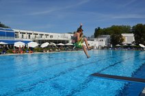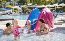 Tipp für sportliche Kids: beim Parktherme Wassertriathlon könnt ihr eure Fähigkeiten im Luftmatratzen-Wettschwimmen, Wettrutschen und bei Kunstsprüngen vom 1m Sprungturm unter Beweis stellen.
