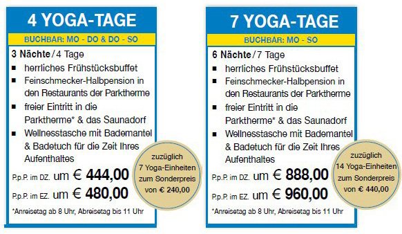 Zuzüglich 7 Yoga-Einheiten zum Sonderpreis von €240,00